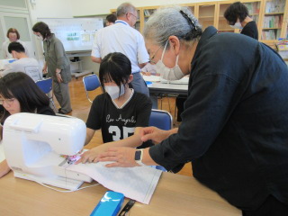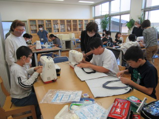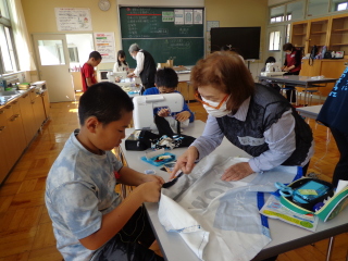 5年家庭科のエプロン作りのお手伝いに
