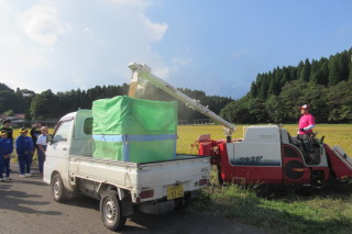 作業後には、コンバインでの収穫や