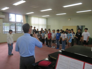 全校合唱の指導をしていただきました。