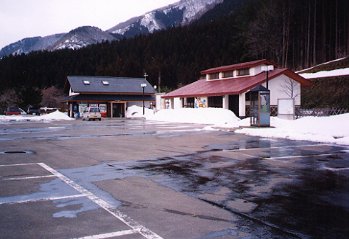 能代から約30キロ北に行った所にある道の駅お殿水です。 まだ雪が残っていますね、所々アスファルトも濡れています。 正面奥が食堂で、その陰にお殿水があります。 右側の建物、何に見えますか?実は・・・トイレです(^-^;;)