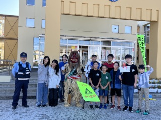 警察署の方々や民生委員が訪問し、挨拶運動を行いました。当日は、6年生が進んで挨拶運動に協力してくれました。