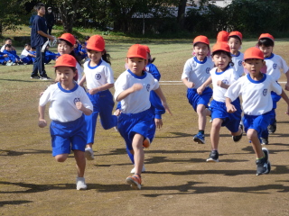 徒競走です。腕を振り、飛ぶようにグラウンドを駆け抜けました。