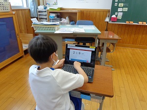 ・1年算数、タブレットで計算の繰り返し練習をしています。