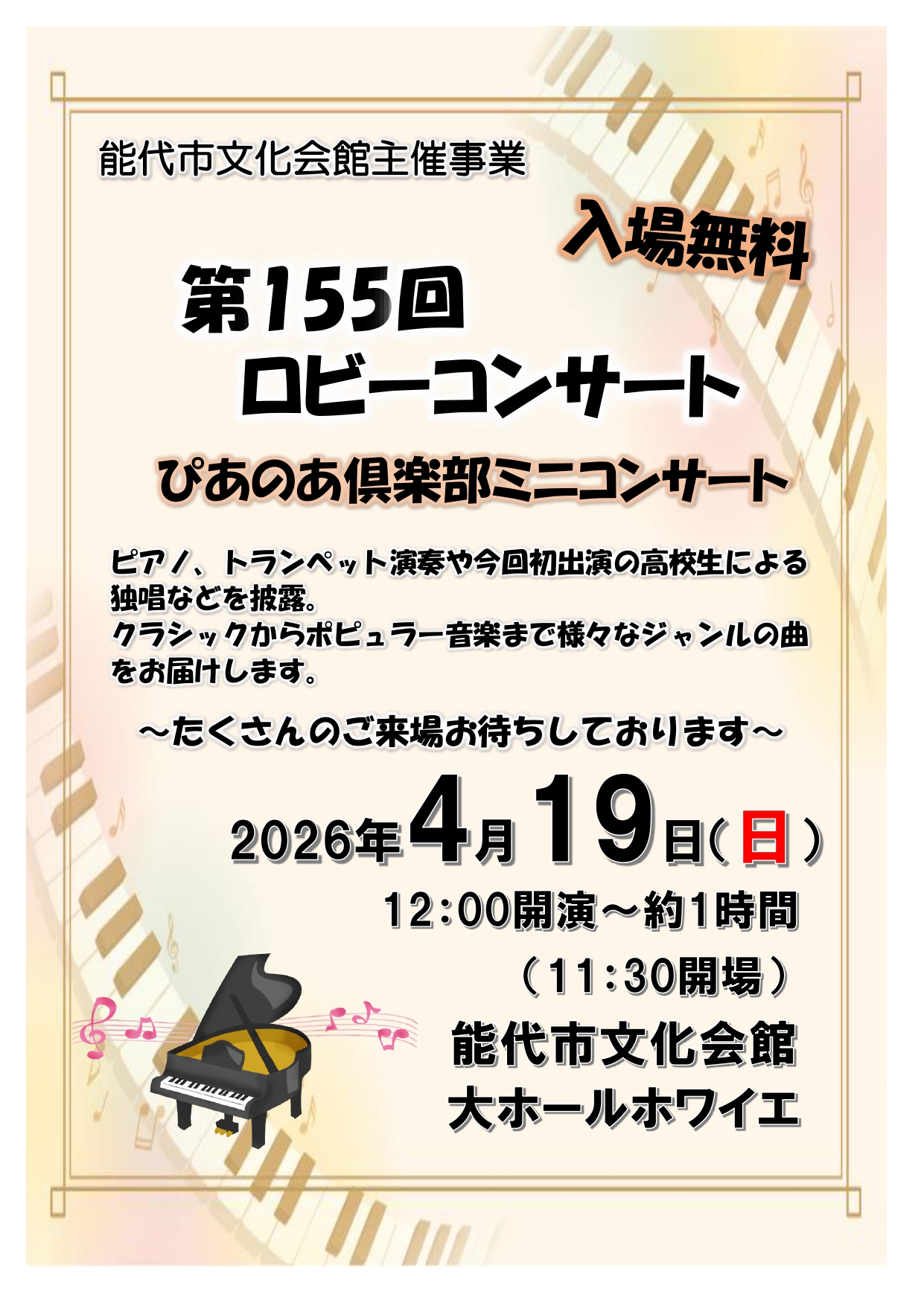 第155回ロビーコンサート『 ぴあのあ倶楽部ミニコンサート 』