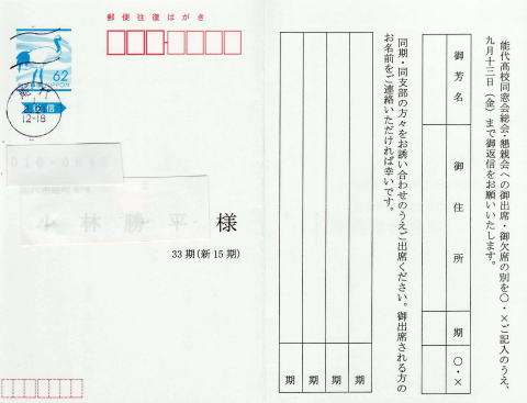 | 各期幹事に届いたハガキは(期によっては各期幹事がいない期もあるが・・・) |