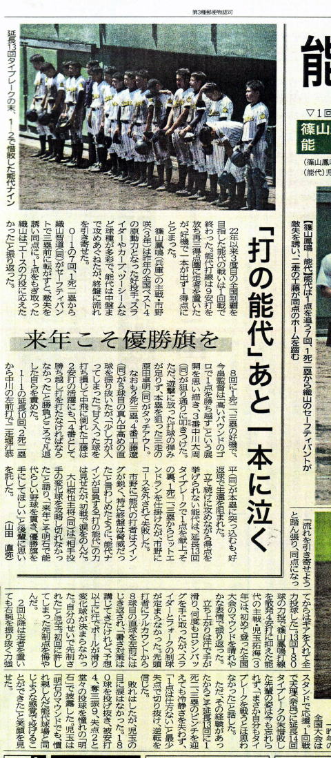 昨日の北羽新報に7月15日の能代西高との対戦結果が載っていた。明日18日は金足農との対戦となる。