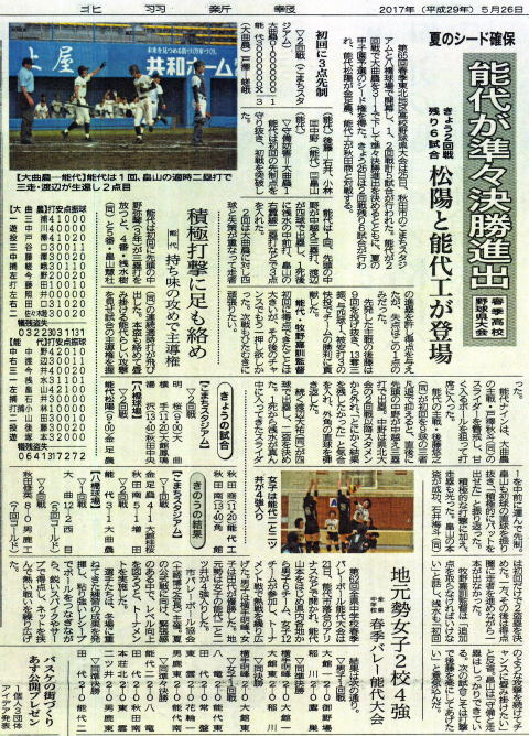 2017//22(金) 今日の北羽新報に昨日の試合結果が報じられていた。