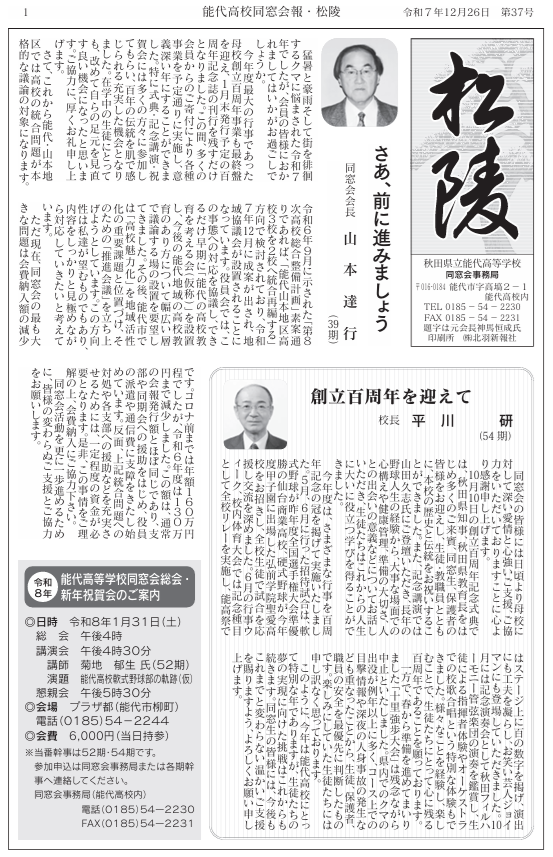 2025/12/26 同窓会報『松陵37号』発行