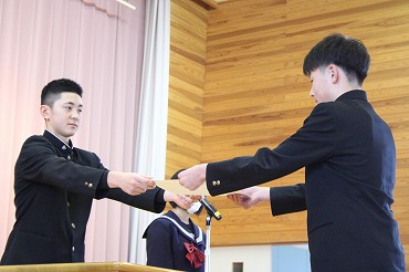 新生徒会長から任命書をもらいました