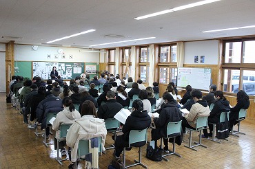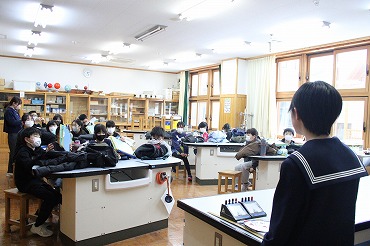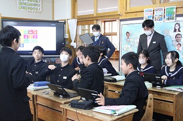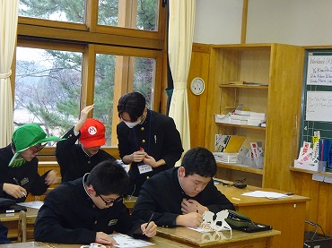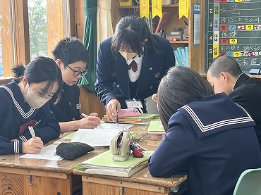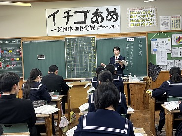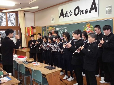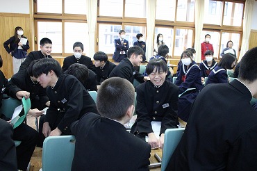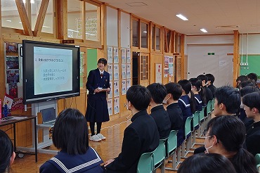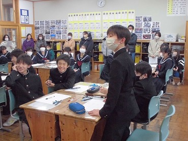 12月22日 教師ミニミニ体験で能代高校から4名の先輩達が来てくれました
