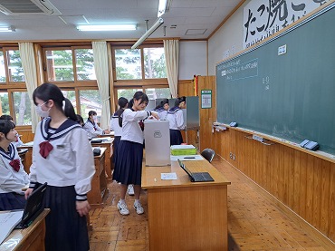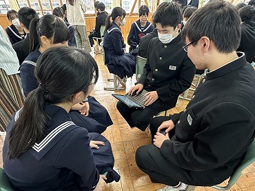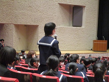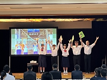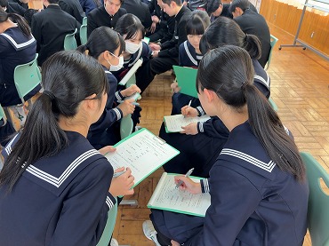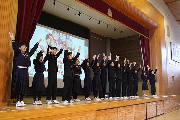 みんなで東雲中生徒会宣言とSNS宣言を確認しました