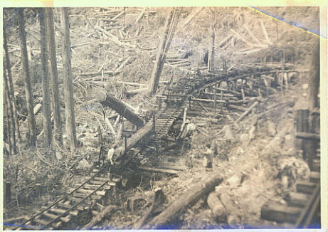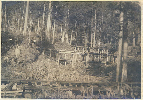 | 伐採現場の写真です。 高低差のある斜面の途中の線路上から撮影されています。 スイッチバックだったのでしょうか? 撮影年月日/撮影場所 不明。 |