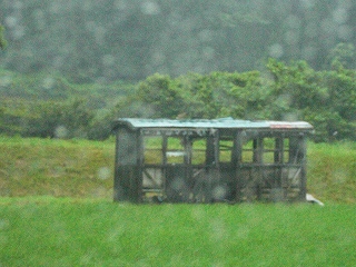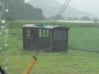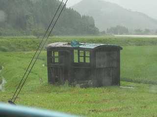 今回も イタ━━━━(゜∀゜)━━━━! でも水がひたひたと.... 遠くに見えるのは水面です。堤防を越えそう。 この時点で水位は客車を超えています。 |
