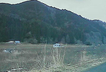 そこで現地へいってみました。 2001年3月30日の状況です。 写真ではわかりにくいのですが 対岸に橋台の跡がありました。 そしてその先にはまっすぐに 山のほうへ伸びる幅の広い畦道が ありました。確かに軌道があった 模様です。 地元にいても判らなかった軌道跡でした。 |