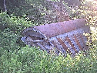この丸みを帯びた天蓋は 鉄道車輌か... それにしてもひどくひしゃげている.. |