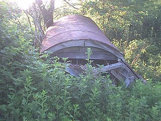 | 中を見たり採寸したりしたかったのですが ヘビが怖いので草の生い茂るこの季節は これ以上近づけませんでした。 寒くなり草が枯れたら再訪を と思いつつ... あれから1年。 その後どうなったか...... サイズ的には日曜大工で2×材やコンパネで作れそうな 大きさです。手持ちの車輪とあわせてMY客車が... あ〜ぁ 夢ですな。 |