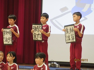 「一致団結 協力して楽しもう」の運動会テーマのもと、子どもたち一人一人が自分のめあてに向かって、短距離走や学年種目、応援などをがんばることができました。雨天により平日開催になった運動会ですが、会場準備・撤収へのご協力および子どもたちへの応援どうもありがとうございました。