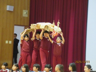 「6年生を送る会」が行われました。5年生が中心になって会の準備をしました。感謝の気持ちを伝えたり,児童会の引き継ぎを行ったり,思い出作りのゲームを行ったりしました。とてもいい会でした。教室に帰ると,何人かの子どもたちが泣いていました。