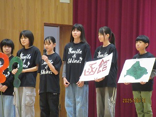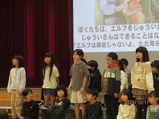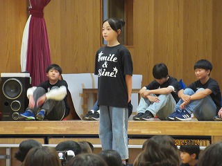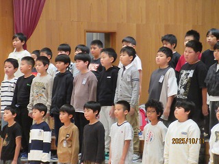 校長先生から2学期の子どもたちの活躍や成長の様子についてのお話がありました。その後、3名の子どもたちが「2学期の思い出と冬休みにがんばること」について元気よく発表してくれました。