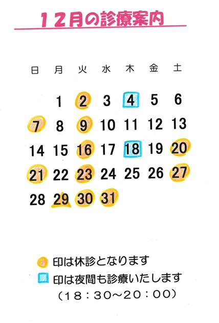 ・休診日 毎週火曜日、第1/3/5日曜日、祝日